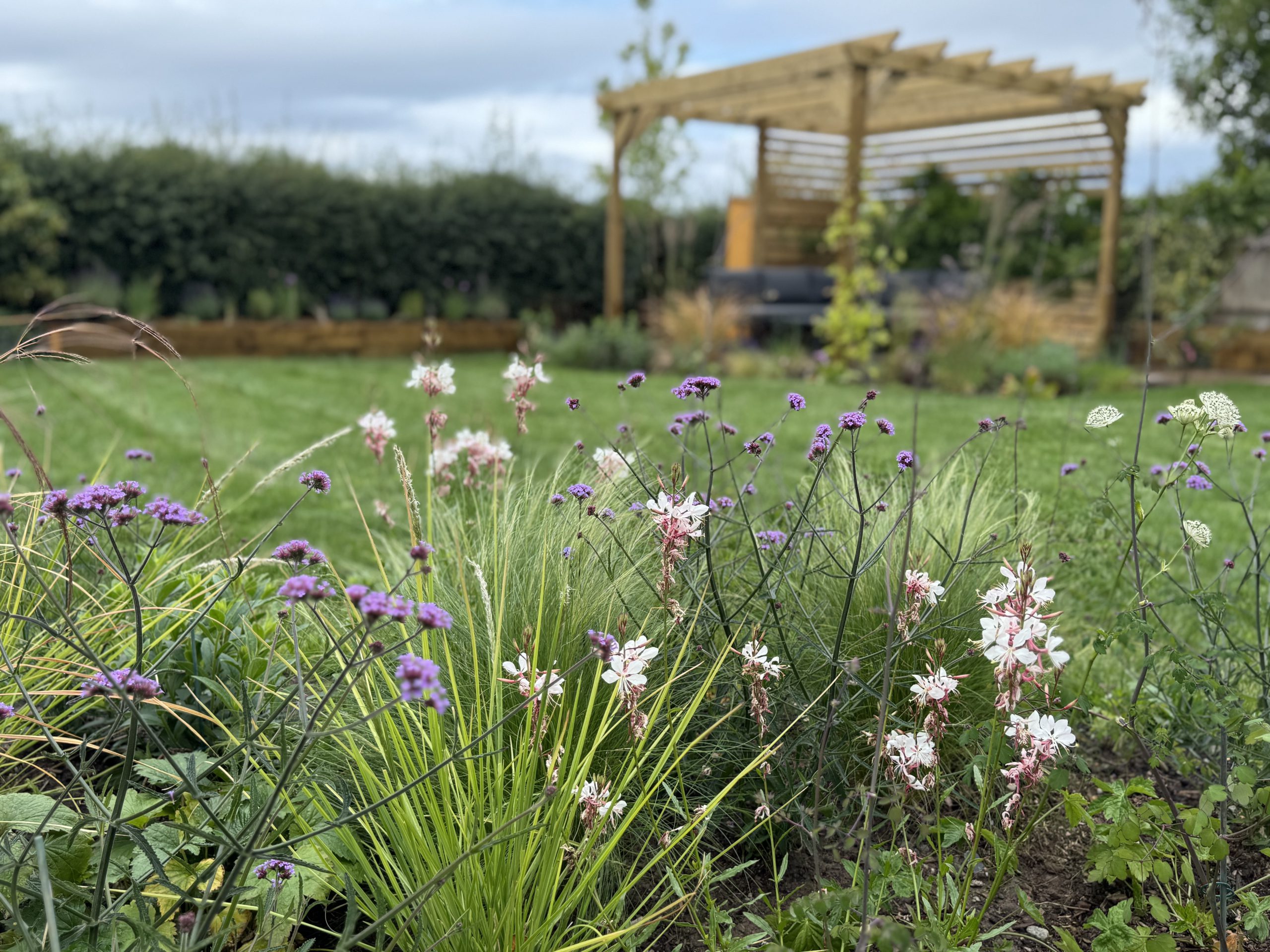 Explore our gallery to see the Elm Tree project, a cottage-style garden with paving, pergola, and planting.